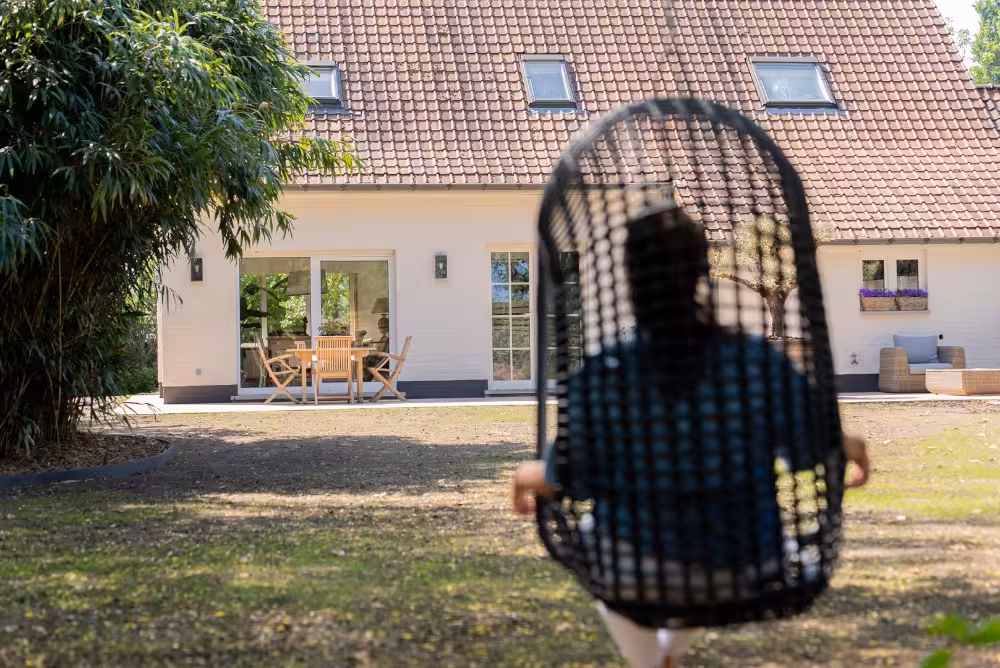 Aan de ene kant: twee karaktervolle huisjes, verstopt in het groen. Een plek waar je even mag landen, waar je je schoenen uitschopt en de wereld buiten zet.